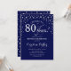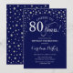80 Födelsedagsfest inbjudan. Elegantens utformning med faux glitter silver och marinblått. Skål till 80 år! Berätta om du behöver anpassa dig ytterligare.
