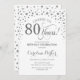 80 Födelsedagsfest inbjudan. Elegantens utformning med faux glitter silver och vit. Skål till 80 år! Berätta om du behöver anpassa dig ytterligare.
