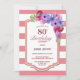 80:e Födelsedagsfesten för rosa stripe-Blommigt Inbjudningar