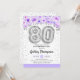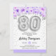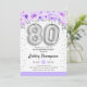 80 födelsedagsfest inbjudan. Elegantens utformning i faux glitter silver med blommigt accent. Inbjudan-kort med silver nummer 80 ballonger, skriptteckensnitt med konetti. Pastel lila, lavender och vit. Perfekt för en snyggt på åttio dagar firande. Berätta om du behöver anpassningsbarnas ålder.