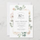 Ät en speciell kvinna med den här eleganten 80:e Födelsedagsfest inbjudan. Vit ros som är inkapslat i mjuk grönt eucalyptus löv bildar ett modernt botaniskt ram. Hela texten kan redigeras så att du kan beskriva ditt speciella firande perfekt