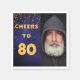 En napkin för killar 80:e födelsedagsfesten. Mall för fotot. Mörk blått bakgrund och texten: Skål till 80. Texten är skriven med ett trendig faux guld-ballongskript. Mörk blått färg är ojämn. Med gyllene konfetti som dekoration.