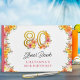 80:e födelsedagsfesten gäst bok med guld nummer 80 som dekorerats med söt blommor. Utformning av kvinnor och eleganter med vattenfärgsarrangemang för blommigt i skuggor av rosans orange och lila av gult. Perfekt för 80-årsjubileum, vår eller sommarfödelsedagslunch, trädgårdstek party etc.