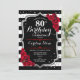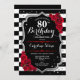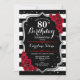 80:e födelsedagsinbjudan Elegant svartvit design med faux glitter. Svartvit rand med röd ros. Perfekt för ett elegant födelsedagsfest.