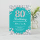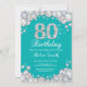 80:e födelsedagsinbjudan Teal och Silver Diamond Inbjudningar