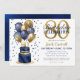 Den här fantastiska manar 80:e födelsedagsfest inbjudan med en 2-lagrars marinblått och guld-kaka med marinblå ballonger och guld, nummer 80 i guld och glanblå konfetti skulle vara perfekt för att fira din älskade 80:e vändning. Det är traditionellt och klassiskt samtidigt som det är färskt, modernt och contemporary. Baksidan är en samordnande marin blå folie.