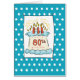 Gör det möjligt med en trevlig födelsedag. Fira med någon på 80-årsdagen med det här kortet. Här är en födelsedagskalas på en vit och blå prickad bakgrund, som är märkt med 80 ljus.