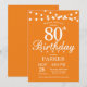 80:e födelsedagsinbjudan med String Ljus. Orangens bakgrund. Kvinnor Manar eller Kvinnor födelsedag. 13:e 15:e 16:e 18:e 20:e 30:e 40:e 60:e 70:e 80:e 90:e 100:e, oavsett ålder. Om du vill göra ytterligare anpassningar klickar du på knappen "Anpassa" och användor verktyg som är utformat för att ändra mallen.