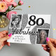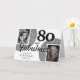 80 och fantastisk silverglitter 2 foto födelsedagskort. Modern och elegant design med en falsk silverglitterbakgrund och 2 foton. Lägg till dina foton - du kan använda ett gammalt och ett nytt foto. Lägg till ditt namn, ålder och text inuti eller radera det.