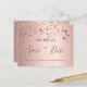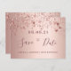 Ett feminin och glamoröst Spara datumkortet i 80 års födelsedagsfest. En feminin rosa, ro guld faux metallisk tittar bakgrund som dekoreras med faux ro guld mousserande stjärnor. Mallar för ett datum och din text. Mörk ro guld färgad brev. Texten: Spara datumet skrivs med ett stort trendig-handskript i stil. Baksida: ro guld bakgrund och stjärnor. Tips! Om du inte vill att det ska se ut som ett vykort klickar du på anpassa, går till baksidan och tar bort delaren och lägger till frimärke.