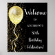 Anpassadets 80-årsjubileum poster med en ballong från guld glitter, med en dusch från guld glitter på svart bakgrund.