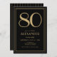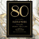 80th Birthday Black and Gold Modern Minimal Adult Inbjudningar