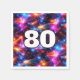 Vibrant neon abstract polygon shapes bursting with explosive sparks on a striking black background for an 80th birthday.
