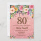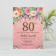 80th födelsedag för rosa guld- blommigt för inbjudningar