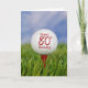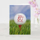 Slut upp av en vitgolfboll på en röd utslagsplats i gräs med himmelbakgrund för den 80th födelsedagen.