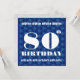 Denna samtidaa design i blått och vit med dess stora och djärva bokstäver är en roligt långt som inviterar folks till ett 80th födelsedagfirande för ÖVERRRAKNING. Text på kort i totalt anpassade - du kan också ändra texten, eller bakgrund färgar för en olik look. Du kan experimentera med olika pappra typer, genom att klicka på "den inbjudanalternativ" fliken på övrerighthanden, tränga någon. Jag rekommenderar det hued metalliska papperet för is, som ger din födelsedaginbjudan en festligt shimmer och sken.