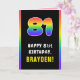 Den här roligten och den robusta prickkortsdesignen har numret "81" med ett multifärgat regnbågsspektrum som inspirerar till gradienten mönster, tillsammans med meddelandet "LYCKLIG 81:a BIRTHDAY" och anpassadet namn. Insidan innehåller ett hälsning-meddelande från anpassadets födelsedag, eller kan kanske tas bort och lämnas tomt om ett meddelande ska skrivas för hand i stället. Ett så här glatt, anpassat födelsedagskalkokort kan vara ett roligt sätt att leverera lite önskemål till någon som firar sin åttioförsta födelsedag. [~Z0000636]