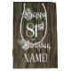 Den här presentsäcksdesignen för ornat och finare-födelsedag innehåller budskapet "Lycklig 81:a födelsedagen" i lavish-texten stil, på ett faux-trä som ser ut som mönster. Den har också en personlig som tar emot namn. En sådan här formell födelsedagsäck kan vara ett respektabelt sätt att figurera en gåva eller present som ges till någon som firar sin 81:a födelsedag. [~Z0000558]