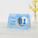 Ett underbart roligt kort för golfer eller golf tillfälle. En golf boll som flyger genom luft med 81 skrivna på den.