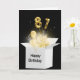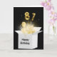 Guld-ballonger och mousserande ljusstrålar i en vit låda på svart bakgrund under 81:a födelsedag