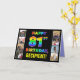 På framsidan av denna glatta och glädjande födelsedag med hälsningskortet "LYCKLIG 81ST BIRTHDAY" visas meddelandet "81ST BIRTHDAY", där texten har en kraftig regnbågsspektruminspirerad gradient mönster, tillsammans med en anpassade som får namn. Till lämnat och högerna på det regnbågsmönstrade meddelandet på framsidan finns några foton som kan vara personlig, kanske med foton på mottagaren, mottagarens familj och vänner och/eller kortets avsändare. Insidan innehåller ett redigerbart hälsning-födelsedagsmeddelande, eller så kan det kanske rensas och lämnas tomt om ett meddelande ska skrivas för hand i stället. Ett fet hälsningskort för anpassadets födelsedag som detta kan användas för att bekräfta någons åttioförsta födelsedag. (Photography © Storytree Studios, Stanford, CA.) [~Z0000667]