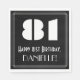 Den här 20-talets framträdande inspirerade vintagen ser papper napkin-design ut med ett stort konsthugga som ser inspirerat nummer "81", meddelandet "Lycklig 81:a födelsedag", ett redigerbart namn och ett gräns mönster som består av tunt linjer. Födelsedag som pappra blöjor som denna kan vara roligt till använda vid ett firande som hålls för att hedra någon som firar sin 81:a födelsedag. [~Z0000494]