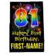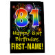 Den här färgstarka, spännande och roligt-födelsedagsdesignen för presentsäcken har ett stort nummer "81" med en regnbågsspektrumövertoning som inspirerade mönster, tillsammans med meddelandet "Lycklig 81:a födelsedagen" och anpassadet namn. Den har också en färgstark bakgrund i mönster som inspirerats av brinnande fyrverkerier. En presentsäck som denna kan användas när man ge en gåva eller gåva för att hedra någons 81:a födelsedag. [~Z0000509]