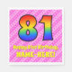 Den pappra napkindesignen med ett stort nummer "81", som är populär på 81:a födelsedagen, har en färgstark mönster som inspirerats av ett regnbågsspektrum. Det innehåller också meddelandet "Lycklig 81:a födelsedag", följt av ett eget namn. Bakgrunden har en ljus rosa och mörk rosa rand mönster som innehåller levande hjärtformer av rosa. Roligt, personlig pappra blöjor av det här slaget kan användas vid en party som hålls för att fira någons åttio första födelsedag. [~Z0000417]