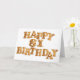 Ett födelsedagskort för roligten till den som kärlek kakar och det söta saken i livet. Brev som bildas av kakor gör ord Grattis på födelsedagen. Inuti finns en cookie med en bita från den och en rolig vers.