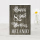 På framsidan av den här eleganten och den högtidliga gratulationskortsdesignen finns meddelandet "Lycklig 82:a födelsedagen" i den opulenta texten stil. På framsidan finns också en mottagare av anpassade namn, och ett faux-trä ser inspirerad mönster bakgrund. Insidan har ett redigerbart hälsning-födelsedagsmeddelande, eller så kan det kanske rensas och lämnas tomt om ett meddelande ska skrivas för hand i stället. Ett portionerat hälsningskort för anpassadets födelsedag som detta kan användas för att bekräfta någons åttiosekundersfödelsedag. [~Z0000556]