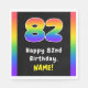 Den pappra napkin-designen för glatta år har ett stort nummer "82" med ett dynamiskt multifärgat regnbågsspektrum som inspirerar gradienten mönster, tillsammans med meddelandet "Lycklig 82:a födelsedagen" och en anpassningsbar mottagare namn. Den pappra blöjan kan användas på en födelsedagsfest för att fira någons åttio andra födelsedag. [~Z0000629]
