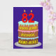 På framsidan av denna glatta och roligt-hälsningskort finns en bild av en treskiktad födelsedagskalas med sifferformade ljus överst som visar åldern "82", tillsammans med meddelandet "LYCKLIG 82ND BIRTHDAY," och anpassadet namn. Insidan har ett anpassat hälsning-födelsedagsmeddelande, eller så kan det kanske rensas och lämnas tomt om ett meddelande ska skrivas för hand i stället. Ett sådant här höjt, redigerbart födelsedag kan skickas i firande på någons åttiosekundersfödelsedag. [~Z0000620]