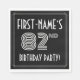 Denna lyxiga och pappra napkin-design för 1920-talet och 1930-talet i stil inspirerade till 82-sekundersmodell för födelsedagsfest/firande, har en personlig namn, ett finare art deco-utseende inspirerat nummer 82:a, meddelandet "FÖDELSEDAGSFEST!" och ett gräns med flera linjer. Bakgrunden är färgad svart som standard, men kan anpassas till ett annat färg om så önskas. Lustigt födelsedag sådana pappra servetter kan användas vid ett party för att fira någons 82-årsdag. [~Z0000616]