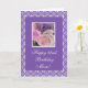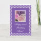 Födelsedaghälsningkort med snöreramen och fotoet av ro på lilor/lavendelbakgrund. Personifiera ditt meddelande! Tarjeta lurar post- en-ingles una foto de ro para el cumples de una mammor. Personifiera su-mensaje! (för el-texto för puede fotografi för replazar escrito) av Maria Santos (Lusinhas gör Sul),
