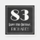 1920-talet-1930-talet inspirerade stil och vintagen ser på den pappra napkin-designen med ett stort konst deco stil-inspirerat nummer "83", meddelandet "Lycklig 83:e födelsedagen", ett eget namn och ett gräns-mönster som består av tunt linjer. Roligt, anpassad födelsedagskalender som pappra blöjor kan användas vid någons 83-årsfirande. [~Z0000461]