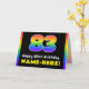Den här populära och glatta gratulationskortsdesignen för födelsedag har numret "83" med ett dynamiskt multifärgat regnbågsspektrum inspirerat övertoningen mönster, tillsammans med meddelandet "Lycklig 83:e födelsedagen" och en anpassningsbar mottagare namn. Insidan har ett anpassat hälsning-födelsedagsmeddelande, eller så kan det kanske rensas och lämnas tomt om ett meddelande ska skrivas för hand i stället. Ett djärvt hälsningskort för anpassadets födelsedag som detta kan vara ett roligt för att ge födelsedagseftergifter till någon som firar sin åttiotredje födelsedag. [~Z0000631]