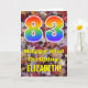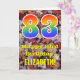Framsidan av denna färgstarka, höstinriktade och naturinspirerade födelsedagskalenderdesign har ett stort nummer "83" med en regnbågsspektrumövertoning som inspirerade mönster, tillsammans med meddelandet "Lycklig 83:e födelsedag" och ett redigerbart namn. På framsidan finns en bakgrund som skildrar det regummerade höst löv. Insidan innehåller ett hälsning-meddelande från anpassadets födelsedag, eller kan kanske tas bort och lämnas tomt om ett meddelande ska skrivas för hand i stället. Ett födelsedagskort som detta kan vara ett sätt att skicka födelsedagspresent önskemål till någon som firar sin åttiotredje födelsedag på i roligt. [~Z0000384]