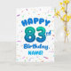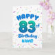 Celebrate their 83rd birthday with a bright, cheerful, and personalizable birthday card! This custom name birthday card features a bold number eighty-three balloon and colorful confetti.