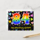 Framsidan av denna färgglada, roliga och spännande födelsedagskortdesign har en stor siffra "84" med ett regnbågsspektrumgradient-inspirerat mönster. Den har också meddelandet "Happy 84th Birthday," och ett personligt mottagarnamn. Framsidan har dessutom en livfull och färgrik bakgrund med ett mönster av kärleksfulla hjärtformer. Baksidan har ett redigerbart födelsedagsgratulationsmeddelande, eller kanske kan tömmas och lämnas tomt om ett meddelande ska skrivas för hand istället. Ett personligt födelsedagskort som detta kan vara ett roligt sätt att skicka ett meddelande för att fira någon som fyller 84 år. Kort som detta kan också användas för att bjuda in gäster till en födelsedagsfest eller firande som hålls