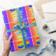 Den här roligten och den spännande födelsedagskalans pappra design har ett stort nummer "84" med ett färgstarkt regnbågsspektrum som inspirerar gradienten mönster. Det innehåller också meddelandet "LYCKLIG 84:e BIRTHDAY" och en redigerbar mottagare av namn. Bakgrunden har också en glatt flerfärgad regnbågsspektruminspirerad övertoning mönster. Personlig som är papper som denna kan användas när man slår in presenter som ges till någon i firande på 84-årsdagen. [~Z0000572]