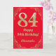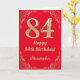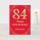 84:e födelsedag Röda och Guld Glitter Ram Kort