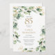 Denna utsökta akvarell-eukalyptus med bladguld-detaljer och guldstänkta prickar på 85-årsfirande inbjudan med kortförfrågan är perfekt för att fira din fru, mamma, syster, faster, vän, farmor/mormor. Dess mjuka, flödande design är modern men ändå traditionell. Baksidan har en vackert formulerad förfrågan om ett kort och en koordinerad liten eukalyptus-kvist. Välj "Personifiera denna mall" för att göra den unik för dig. Inom några sekunder ser du dina fantastiska inbjudningar till 85-årsfirande.
