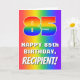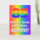 Framsidan av detta pulserande och spännande gratulationskort för födelsedag har ett stort nummer "85" med ett regnbågsspektrum som inspirerat övertoningen mönster, tillsammans med meddelandet "LYCKLIG 85 BIRTHDAY," och ett anpassade namn. Bakgrunden på framsidan har också en glatt flerfärgad regnbågsspektrumövertoning mönster. Insidan har ett hälsning-meddelande på anpassningsbarnas födelsedag, eller kan kanske tas bort och lämnas tomt om ett meddelande ska skrivas för hand i stället. Ett kärleksfullt, redigerbart födelsedag som detta kan skickas för att fira någons åttiofemte födelsedag. [~Z0000570]
