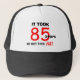Det här är en 85-årsdagars gåva för manar. Orden "Det tog 85 år att få den här hatten" visas på hatten. Hatten är ett roligt sätt att säga "Lycklig 85:e födelsedagen". Copyright Kathy Henis