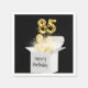 Guld-ballonger med gnistor och rosett band i en vit låda på svart bakgrund under 85:e födelsedagsfesten. Text i rutan kan redigeras. Bakgrunden till färg kan ändras.