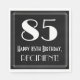 I vintage inspirerade stil och 20-talet den pappra napkin-designen på födelsedagen en stor konst deco stil-inspirerad nummer "85", meddelandet "Lycklig 85:e födelsedag", ett eget namn och en gräns mönster som består av tunt linjer. Roligt, anpassadets födelsedag pappra blöjor som denna kan användas på någons 85:e födelsedagsfest. [~Z0000461]