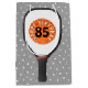 Lycklig 85:e födelsedagstexten på orangens pickleball och paddel på polka punkt grått och vit mönster. Ålder kan ändras.