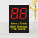 Framsidan av denna födelsedagskortdesign med nördig och nördigt tema visar en stor siffra "86" i röd sju segment digital display-stil, tillsammans med meddelandet "Ha en fantastisk 86-årsdag" och ett personligt namn, på en svart bakgrund. Insidan har ett anpassningsbart födelsedagsmeddelande, eller kanske kan tömmas och lämnas tomt om ett meddelande ska skrivas för hand istället. Ett födelsedagskort som detta kan vara ett roligt sätt att skicka födelsedagsönskningar till någon som firar sin åttiosjätte födelsedag.