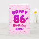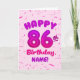 Celebrate their 86th birthday with a bright, cheerful, and personalizable birthday card! This custom name birthday card features a bold number eighty-six balloon and colorful confetti.