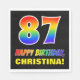 Den här roliga, roligt- och färgfulla pappra napkindesignen har ett stort nummer "87" och meddelandet "GRATTIS PÅ FÖDELSEDAGEN,", som båda har en regnbågsspektrumövertoning som inspirerar till mönster-färgning, tillsammans med en fet gult anpassningsbar-mottagare namn. Bakgrunden är svart på färgad. På födelsedagen kan pappra servetter som denna vara roligt till använda vid ett party som hålls för att fira någons åttio sjunde födelsedag. [~Z0000476]